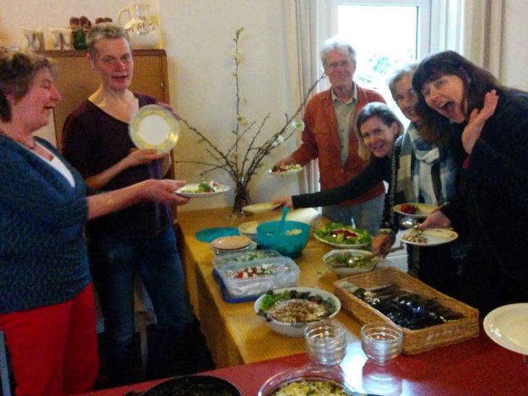 Zo’n 20 mensen genoten van elkaars kooksels als vanouds in De Exepeditie.