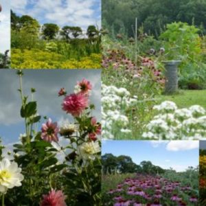 De kleurrijke bloementuin, tevens pluktuin, ligt aan de westkant, met vaste planten, één en tweejarigen (zoals zonnebloemen, asters, bergkorenbloem, rudbeckia’s, grassen e.d.); voornamelijk snijbloemen. Je kunt een bos door ons laten samenstellen, of (in overleg) zelf een boeket bij elkaar plukken ! In de boomgaard kun je kennismaken met uiteenlopende soorten bomen en struiken die eetbare vruchten dragen.