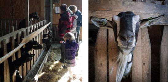 Met een mooi verpakt wijnkaasje voor mijn vriendinnen (bij wie ik die avond ga eten) in mijn tas, wil ik mijn kinderen in de auto laden om terug te rijden naar Amersfoort. Maar Lily houdt ons tegen, we kunnen echt niet weg voordat we een twee dagen oud geitje hebben geknuffeld! Nou… vooruit dan!